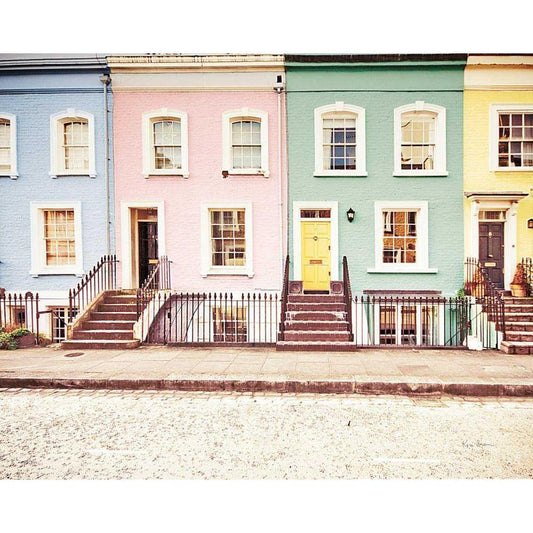Chelsea Houses All Lined Up Spring Black Modern Wood Framed Art Print by Bevan, Keri