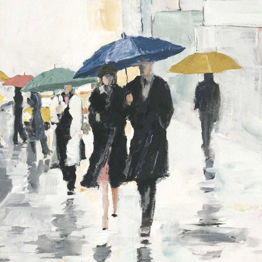 Walking in the Rain Black Modern Wood Framed Art Print by Tillmon, Avery