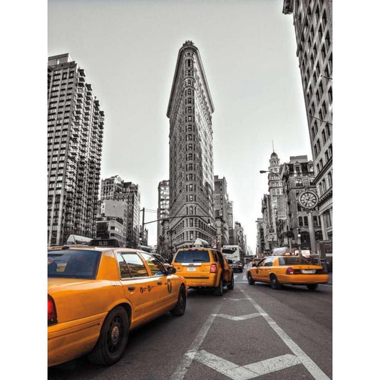 New York Taxis Black Modern Wood Framed Art Print by Frank, Assaf