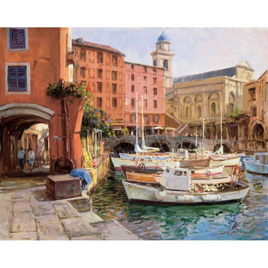 Mediterranean Port Black Modern Wood Framed Art Print by OToole, Michael