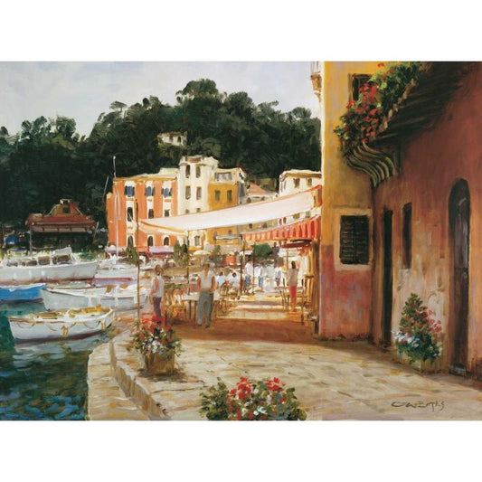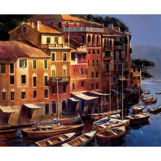 Portofino Waterfront Black Modern Wood Framed Art Print by OToole, Michael