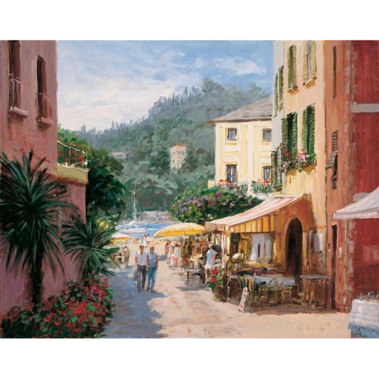Morning Stroll - Portofino Black Modern Wood Framed Art Print by Bates, George