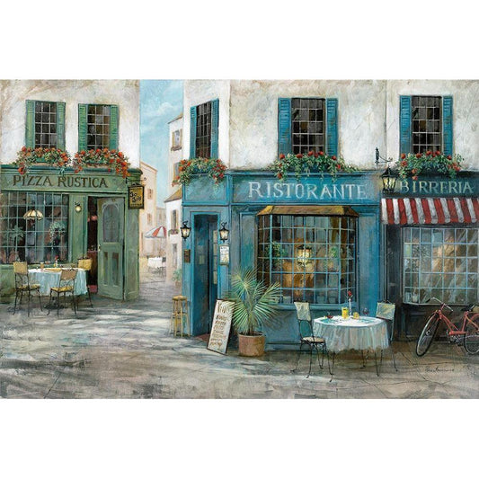 Village Cafe Black Modern Wood Framed Art Print by Manning, Ruane