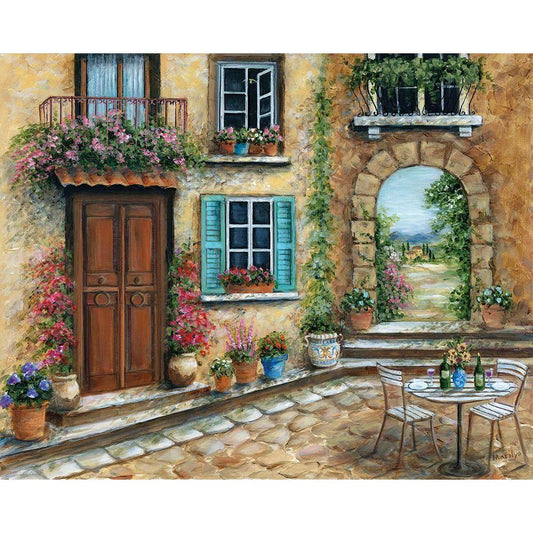 Tuscan Courtyard Black Modern Wood Framed Art Print by Dunlap, Marilyn