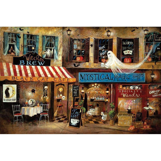 Mystical Magic Shop Black Modern Wood Framed Art Print by Manning, Ruane