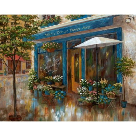 Annas Corner Flower Shop Black Modern Wood Framed Art Print by Nan