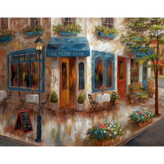 Le Petit Cafe Black Modern Wood Framed Art Print by Nan