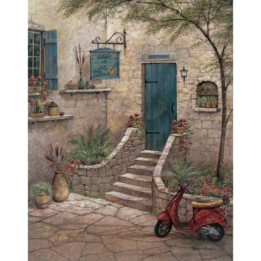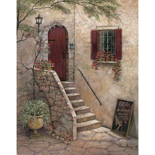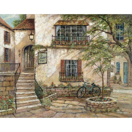 Courtyard Ambiance Black Modern Wood Framed Art Print by Manning, Ruane
