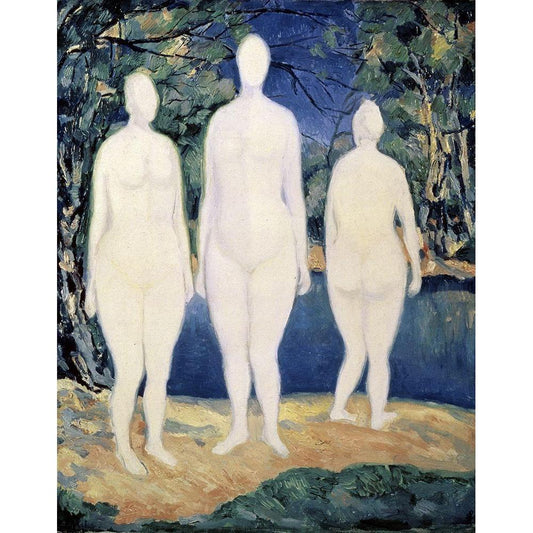 Three Nude Figures Black Modern Wood Framed Art Print with Double Matting by Malevich, Kazimir