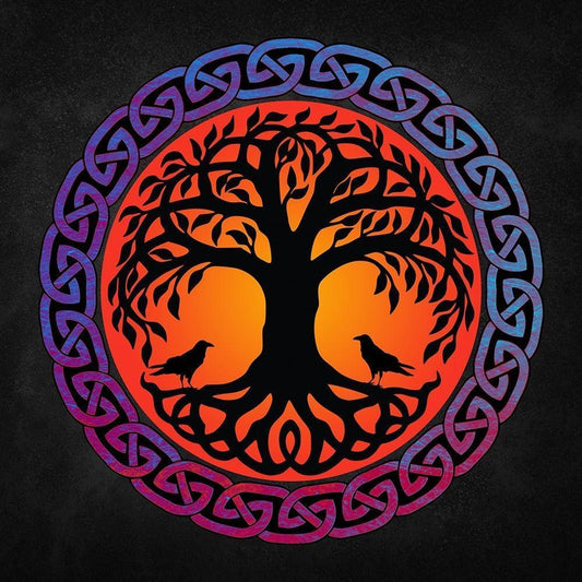 Yggdrasil World Tree with Huginn and Muninn White Modern Wood Framed Art Print by Lavoie, Tina