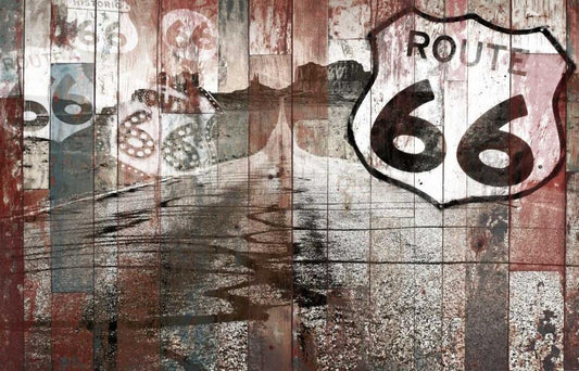 Route 66 White Modern Wood Framed Art Print with Double Matting by Grey, Jace