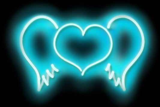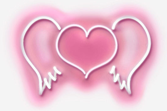 Neon Heart Wings PB White Modern Wood Framed Art Print with Double Matting by Carr, Hailey
