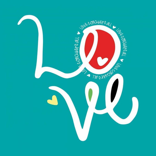 Love Conquers White Modern Wood Framed Art Print with Double Matting by Rodriquez Jr, Enrique