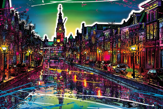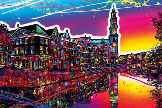 C008 Colorful Cityview Of Amsterdam Westertoren White Modern Wood Framed Art Print with Double Matting by Heere, Ray