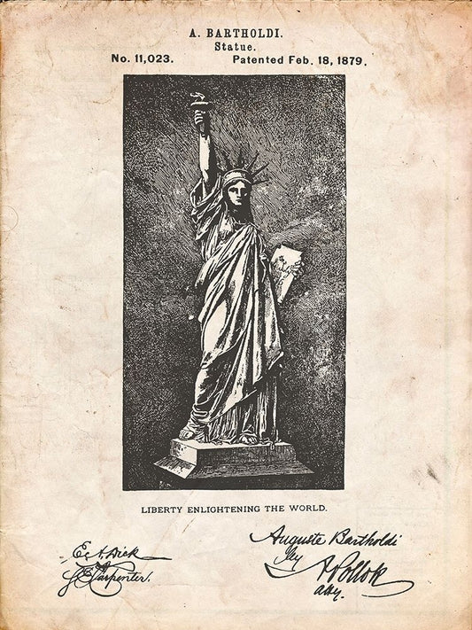 PP474-Vintage Parchment Statue Of Liberty Poster White Modern Wood Framed Art Print with Double Matting by Borders, Cole