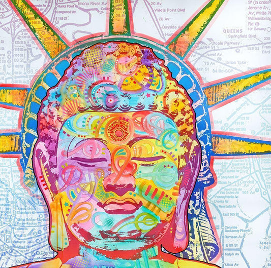 Buddha Liberty White Modern Wood Framed Art Print with Double Matting by Dean Russo Collection