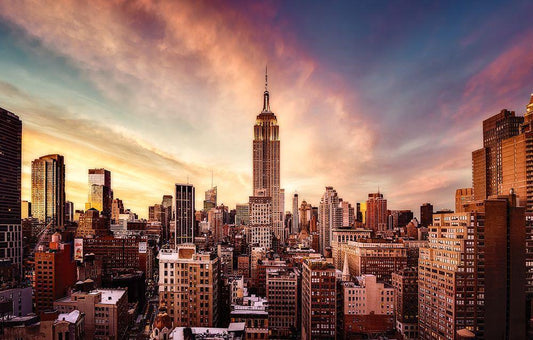 New York Skyline Black Ornate Wood Framed Art Print with Double Matting by Pandit, Shubhra