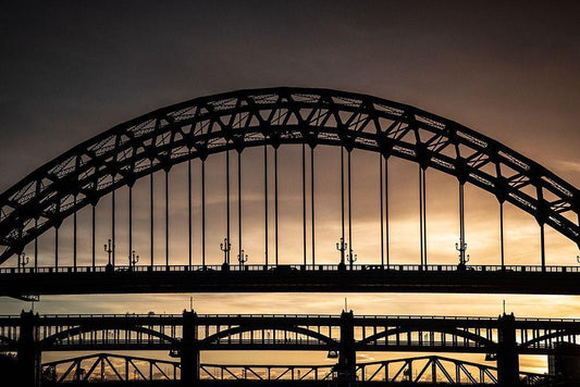 Evening-Tyne Bridges Black Ornate Wood Framed Art Print with Double Matting by Wride, Linda