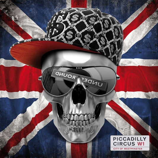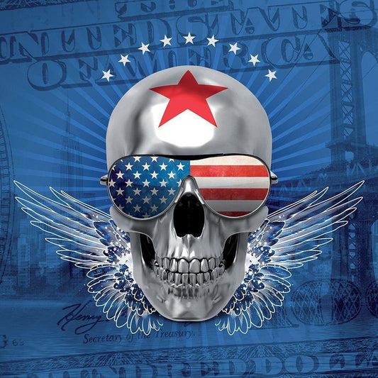 Skull Union Jack White Modern Wood Framed Art Print with Double Matting by Braun Studio
