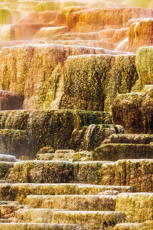 Travertine terraces at Minerva Spring-Mammoth Hot Springs-Yellowstone National Park-Wyoming-USA Black Ornate Wood Framed Art Print with Double Matting by Bishop, Russ