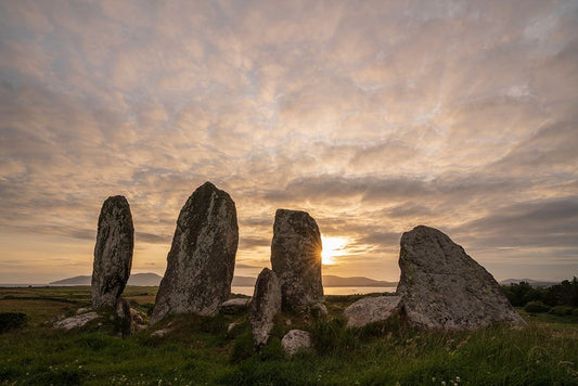 Europe-Ireland-Waterville-Eightercua stone row a sunset Black Ornate Wood Framed Art Print with Double Matting by Jaynes Gallery
