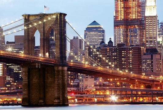 Brooklyn Bridge in Lights White Modern Wood Framed Art Print with Double Matting by Heng, Lu