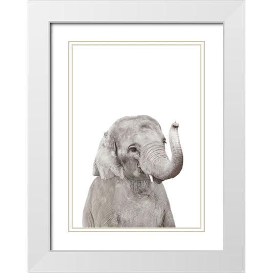 Baby Elephant White Modern Wood Framed Art Print with Double Matting by Pienaar, Kathrin