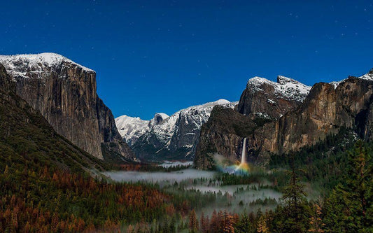 Bridalveil Fall Moonbow White Modern Wood Framed Art Print with Double Matting by Zhu, Hua