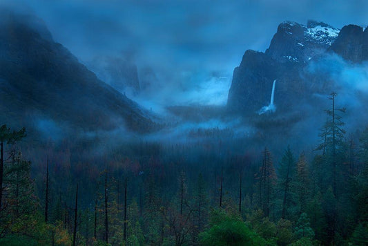 Yosemite Firefall White Modern Wood Framed Art Print with Double Matting by Zhang, Yan