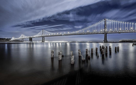 The Bay Bridge Lights San Francisco White Modern Wood Framed Art Print with Double Matting by Harriman, Toby