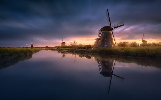 Kinderdijk Windmills White Modern Wood Framed Art Print with Double Matting by M. Garcia, Jesus