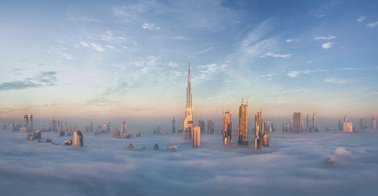 Super Moon Burjkhalifa White Modern Wood Framed Art Print with Double Matting by Anjum, Zohaib