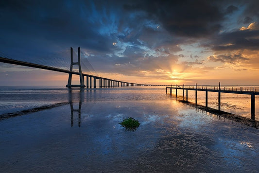 Brooklyn Bridge White Modern Wood Framed Art Print with Double Matting by Llerandi, Eduardo