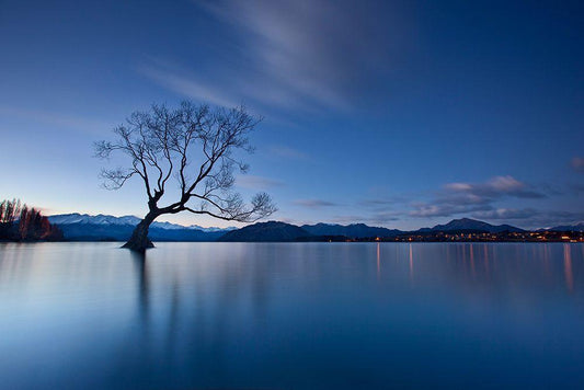 Wanaka Twilight White Modern Wood Framed Art Print with Double Matting by Zhang, Yan