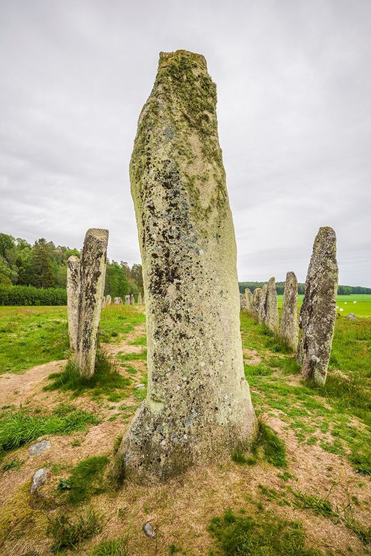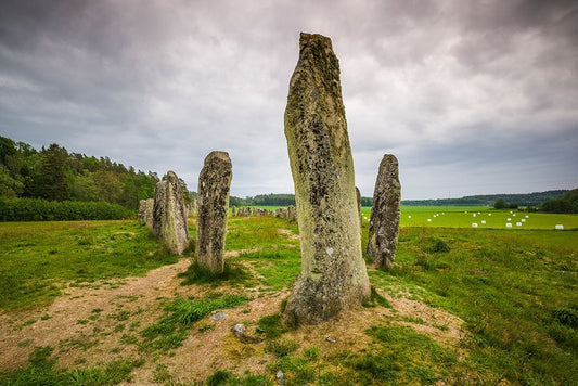 Sweden-Bohuslan-Blomsholm-Blomsholmsskeppet-stone ship circle-Iron-age burial ground-400-600 AD White Modern Wood Framed Art Print with Double Matting by Bibikow, Walter