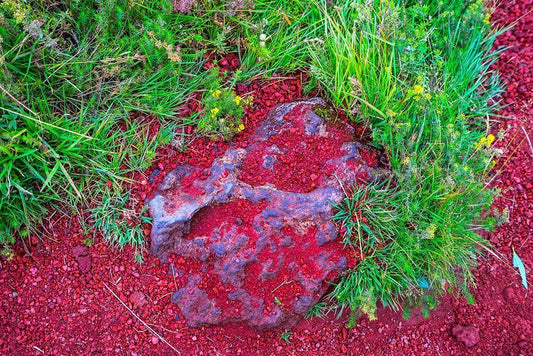 Red Volcanic Stone green Grass Kerio Volcano Crater blue Lake Golden Falls Golden Circle White Modern Wood Framed Art Print with Double Matting by Perry, William
