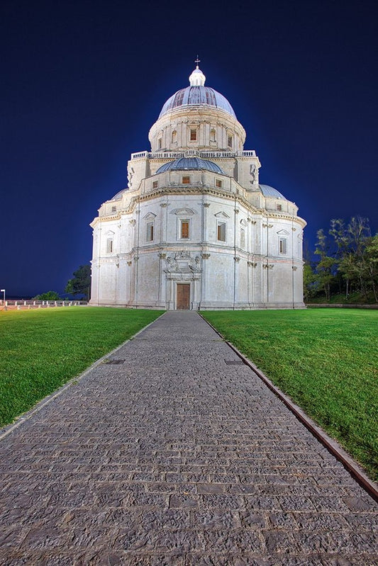 Italy- Todi. Light on the Temple of Santa Maria della Consolazione. White Modern Wood Framed Art Print with Double Matting by Eggers, Julie