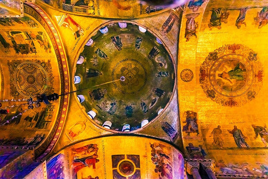 Cross Saint Marks Basilica arches-mosaics-Venice-Italy White Modern Wood Framed Art Print with Double Matting by Perry, William