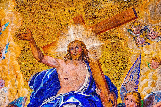Jesus Christ-angels resurrection facade Saint Marks Cathedral-Venice-Italy White Modern Wood Framed Art Print with Double Matting by Perry, William