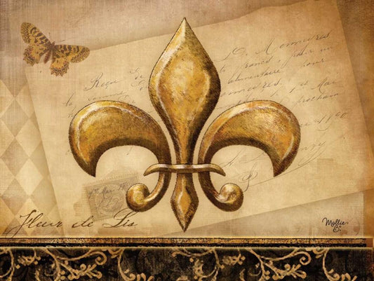 Fleur-de-lis White Modern Wood Framed Art Print with Double Matting by Mollie B.