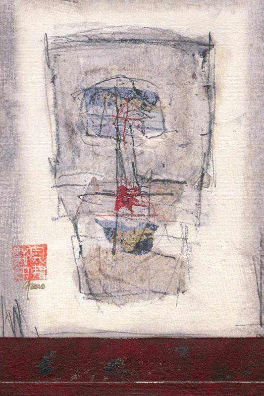 Mauros Asian Jewels IV White Modern Wood Framed Art Print with Double Matting by Mauro