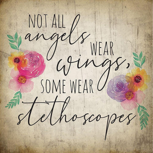 Angels Wear Stethoscopes Black Modern Wood Framed Art Print by ND Art