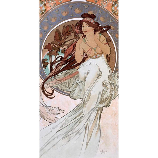 La-musique Black Modern Wood Framed Art Print by Mucha, Alphonse