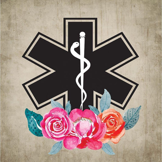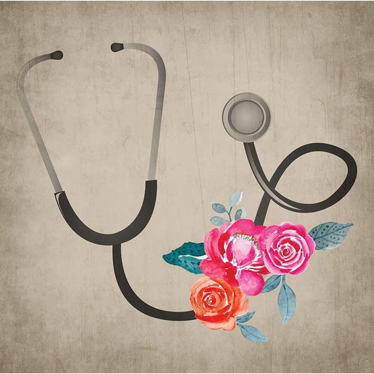Stethoscope Flowers Black Modern Wood Framed Art Print by ND Art
