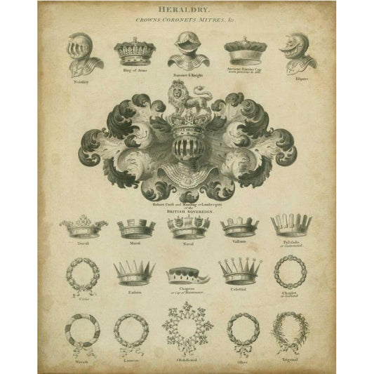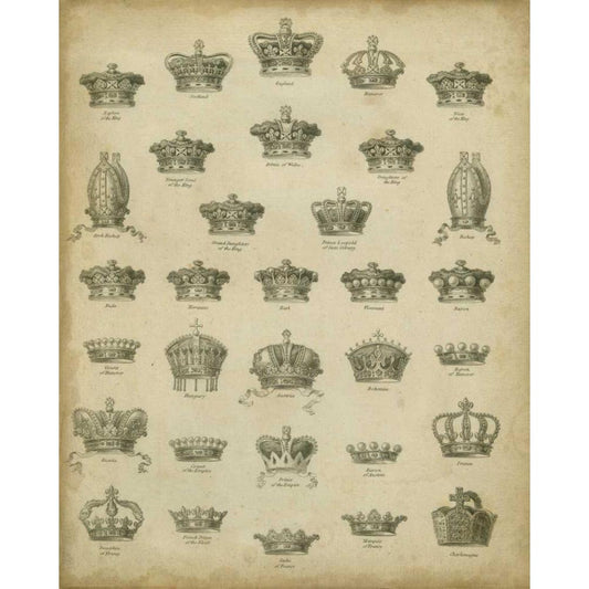 Heraldic Crowns and Coronets I Black Modern Wood Framed Art Print by Milton