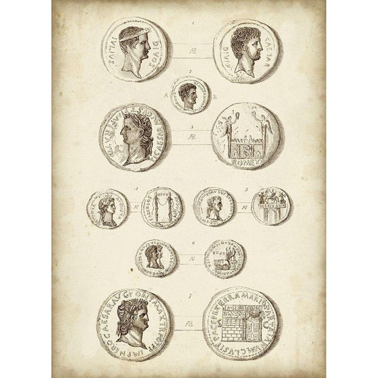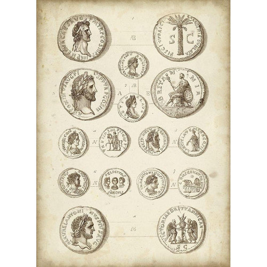 Antique Roman Coins I Black Modern Wood Framed Art Print by Unknown