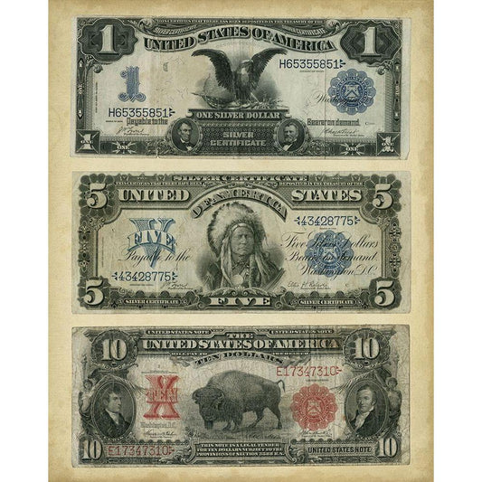 Antique Currency V Black Modern Wood Framed Art Print by Vision Studio