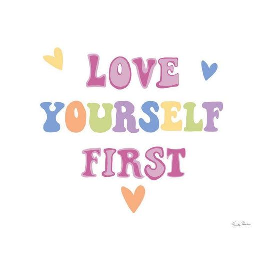 Love Yourself First Pastel Black Modern Wood Framed Art Print by Zaman, Farida