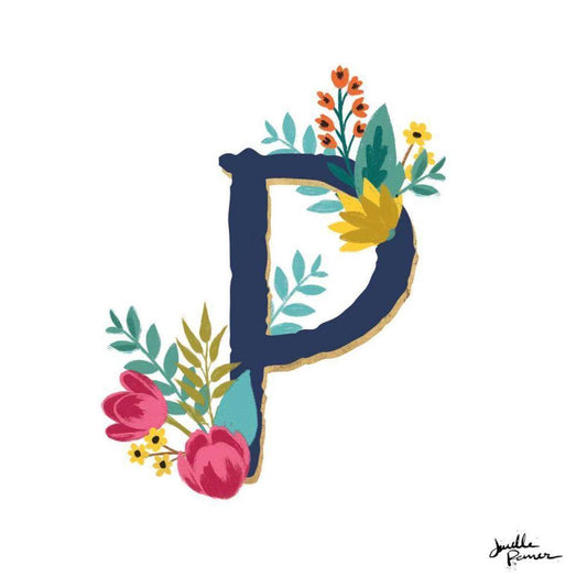 Romantic Luxe P Navy Black Modern Wood Framed Art Print by Penner, Janelle