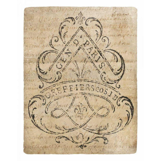 French Sewing Letter M Black Modern Wood Framed Art Print by Wild Apple Portfolio